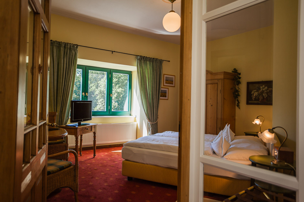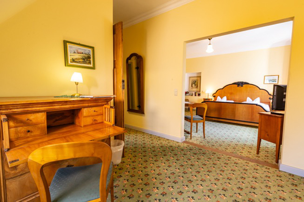 Eine gemütliche Schenke für Hausgäste mit antiquarischen Möbeln und zwei Gesellschaftsräume, in denen mehr und mehr auch Gesprächsrunden, Lesungen und Kammerkonzerte am Bechsteinflügel ihre Zuhörer finden.
