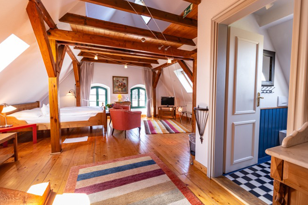 Im denkmalgeschützten Gutshaus Solzow befinden sich elf individuell eingerichtete Doppelzimmer im Gutshausstil mit modernen Bädern.